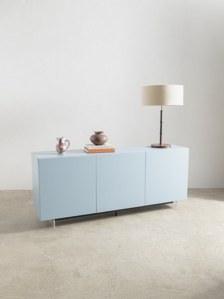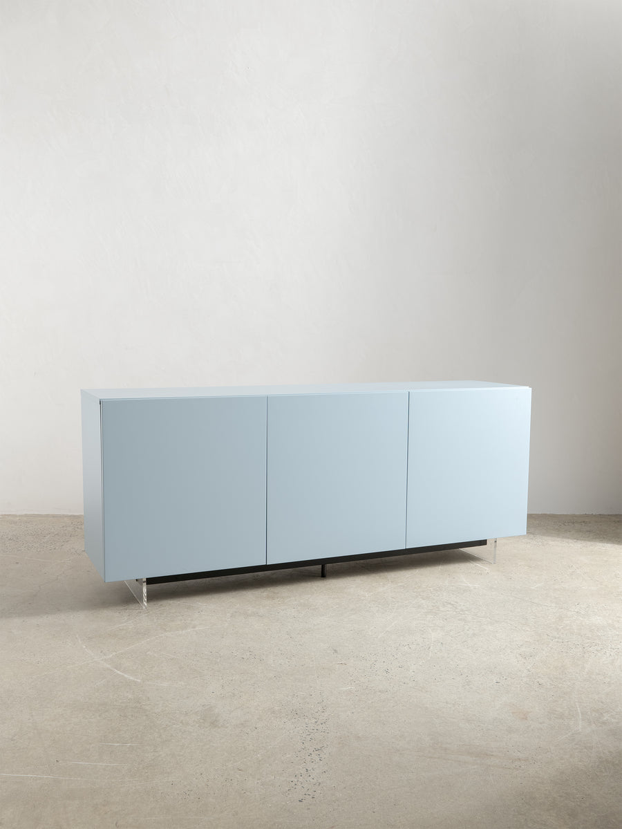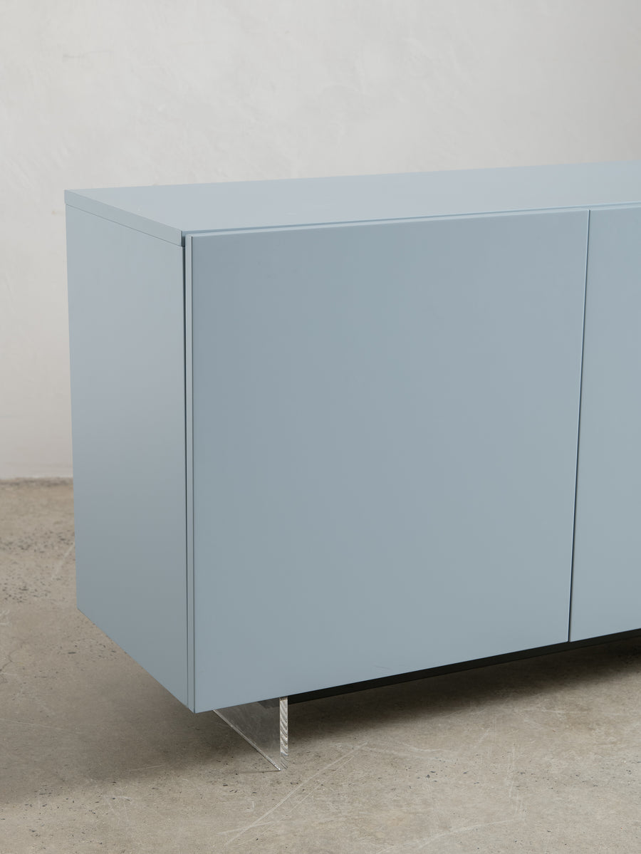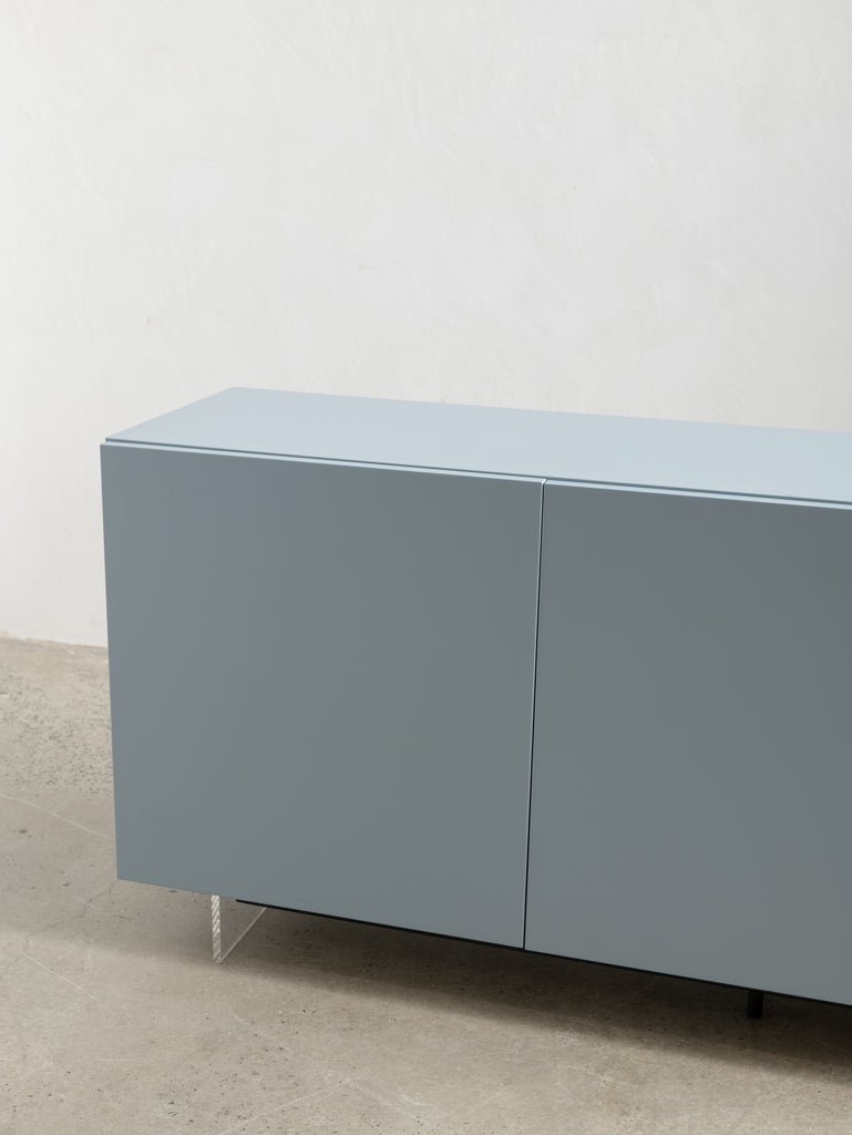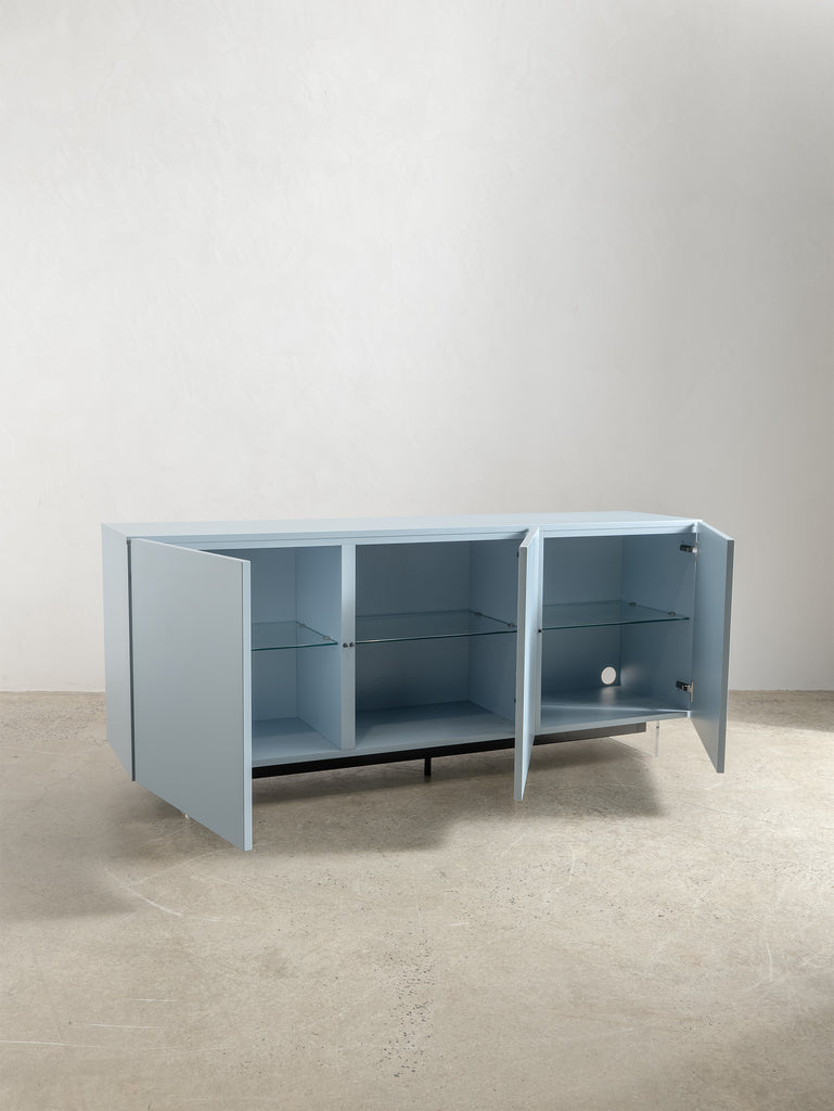 A serene and sophisticated expression of modern design, the Essenzia sideboard in light blue beckons with its clean lines and refined elegance. Produced by Riflessi, this piece carries the grace of contemporary Italian craftsmanship—simple yet striking in its minimalism.
