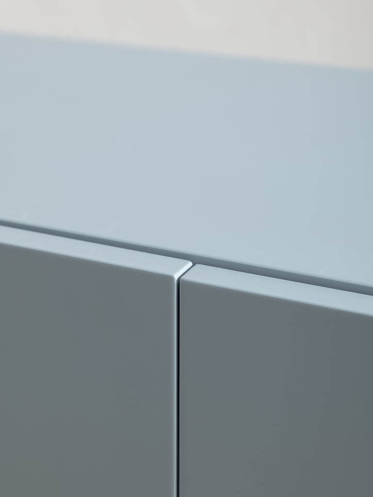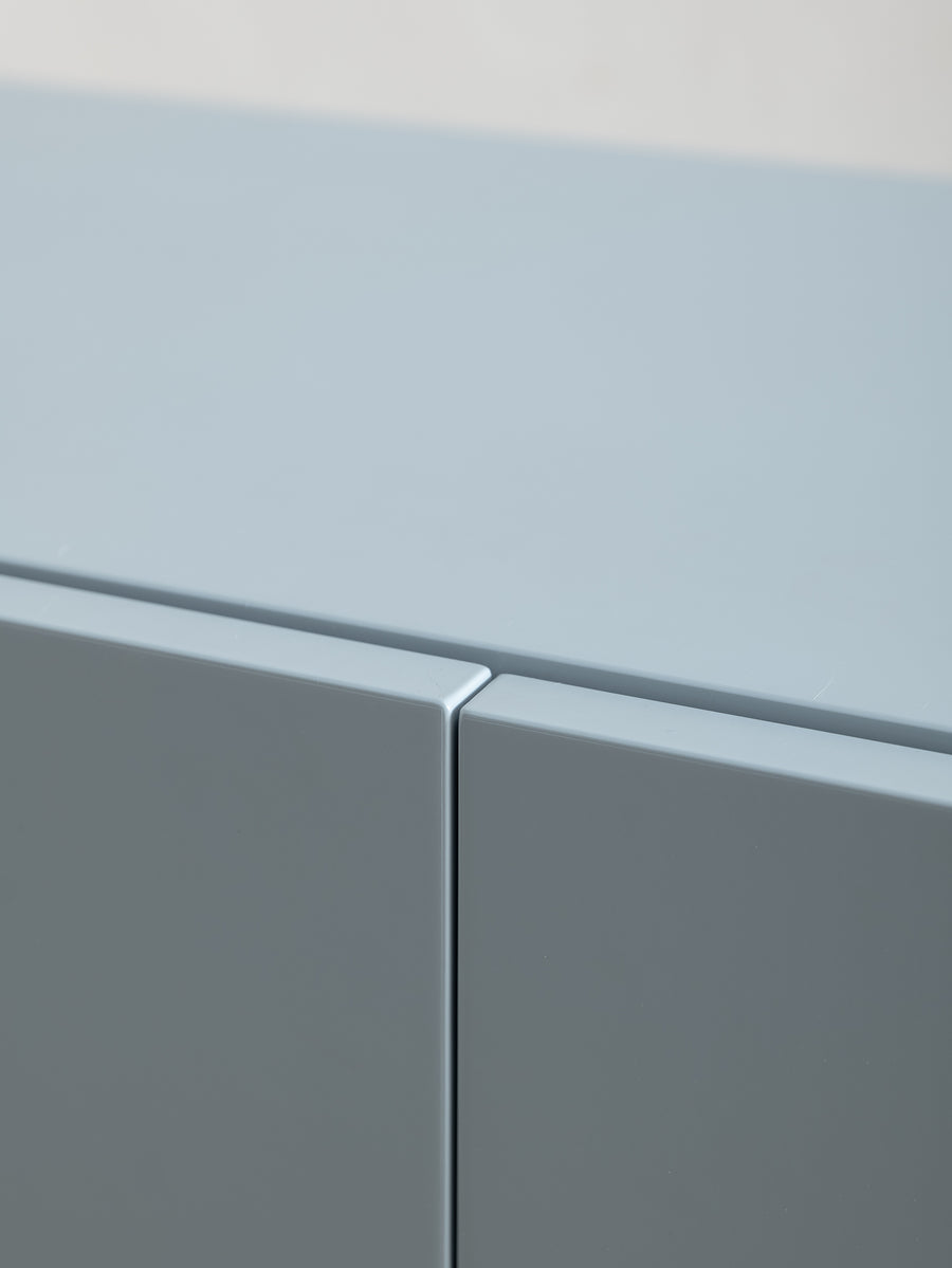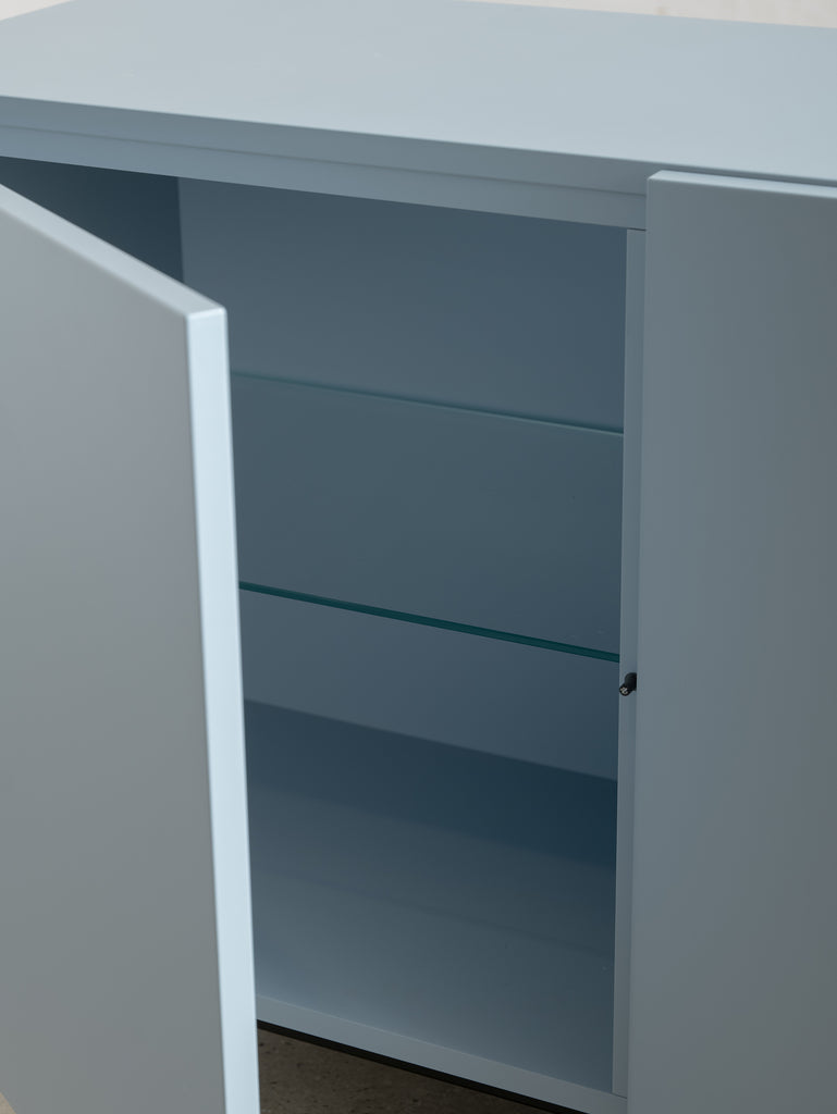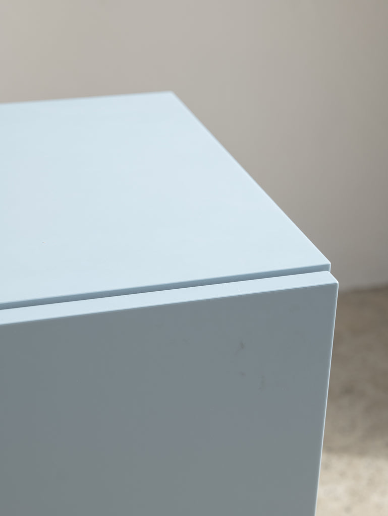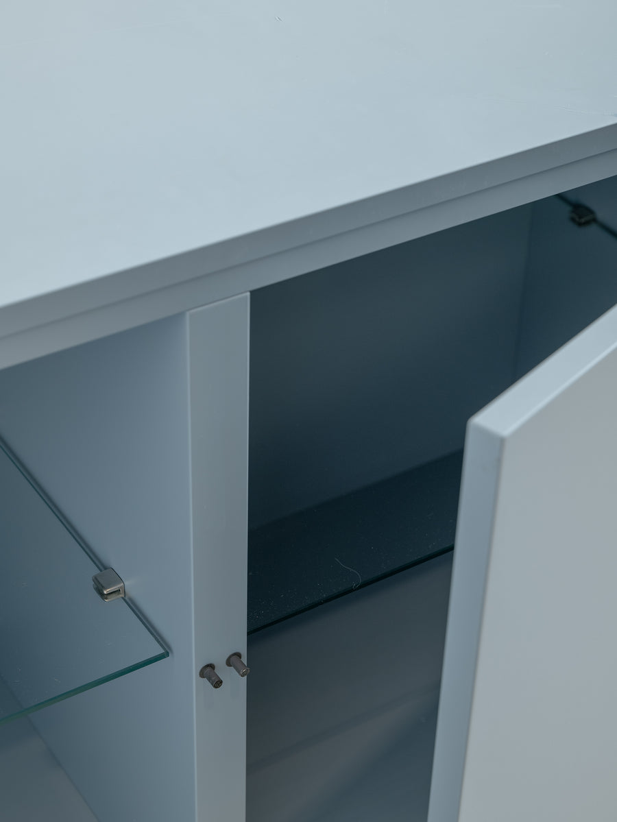 A serene and sophisticated expression of modern design, the Essenzia sideboard in light blue beckons with its clean lines and refined elegance. Produced by Riflessi, this piece carries the grace of contemporary Italian craftsmanship—simple yet striking in its minimalism.