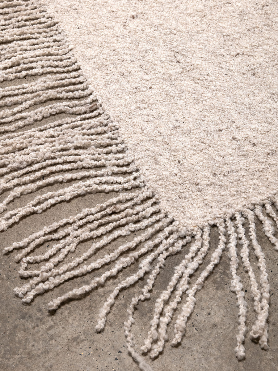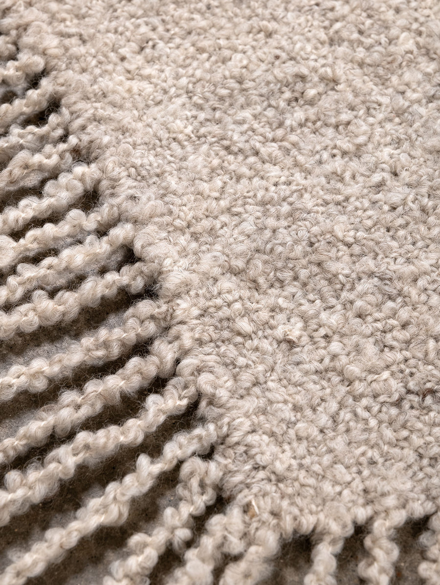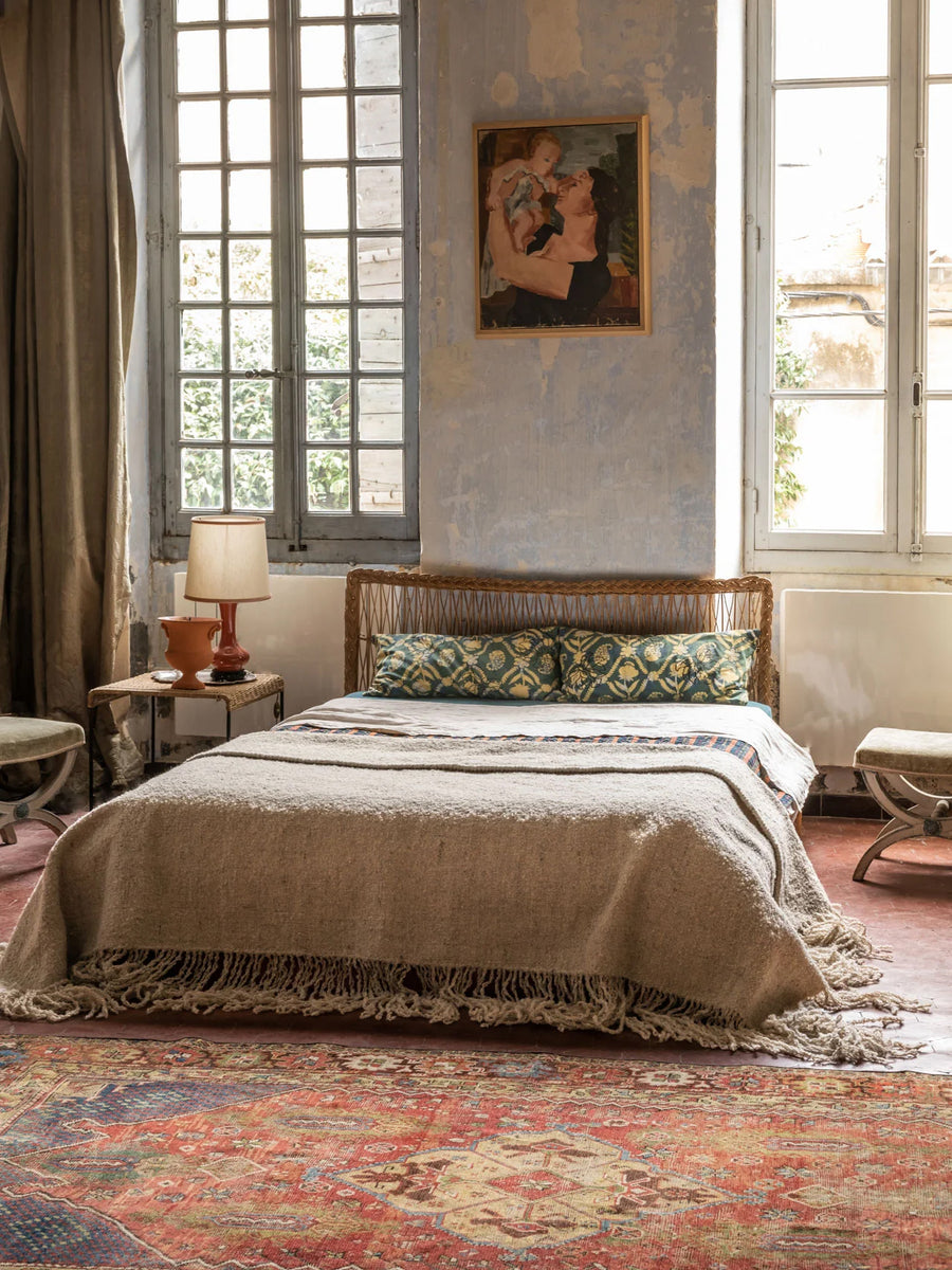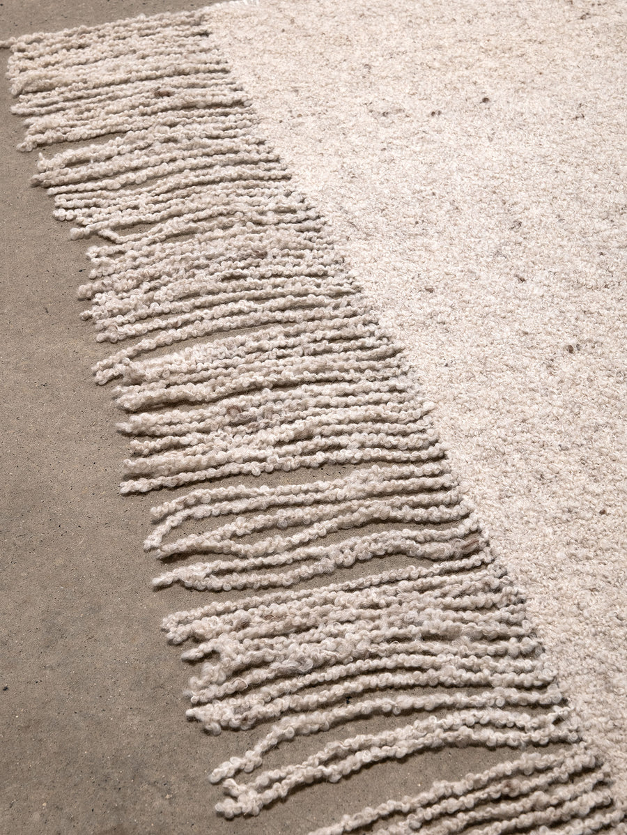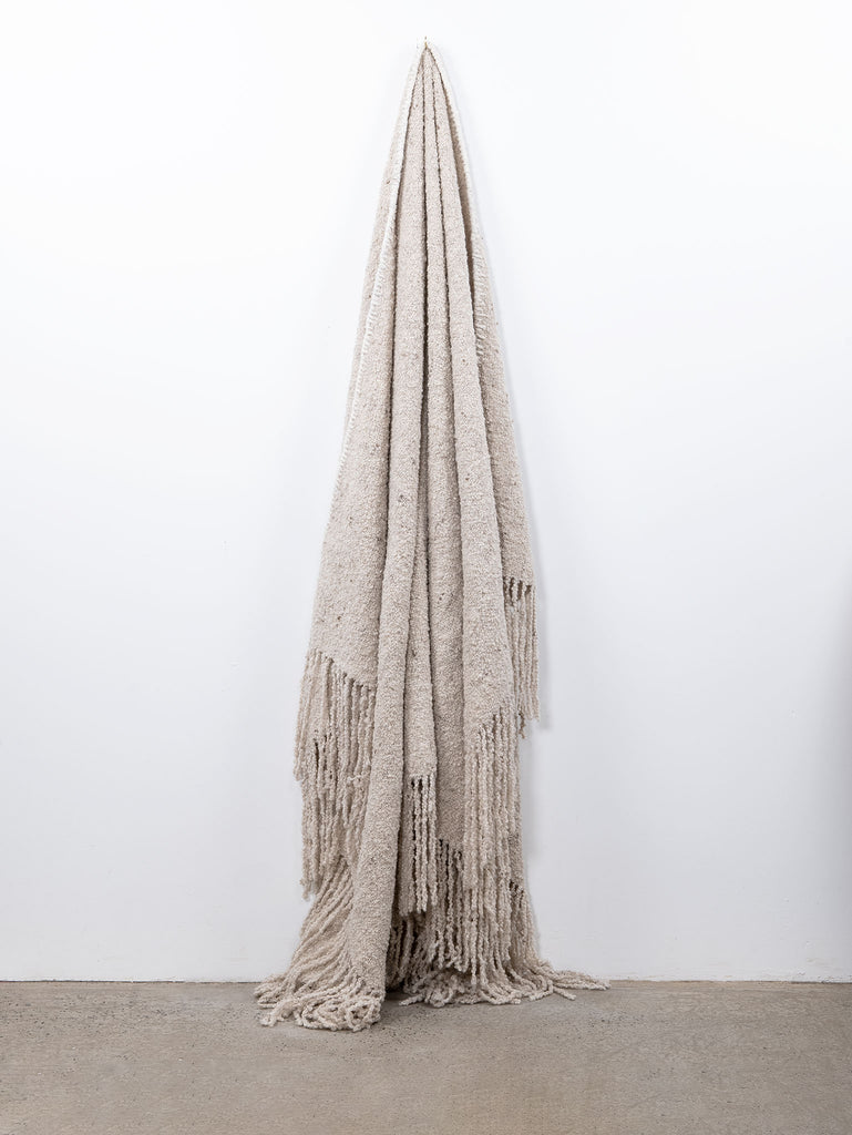 Coverlet No 01 effortlessly captures attention with its elegant and sophisticated design. Unlike traditional bedspreads, it is designed to cover the lower half of the bed. Its soft expression and heavy composition make a perfect statement piece for your bed, sofa or any preferred furniture. The dramatic draping created by the fringes adds a touch of artistry, while the meticulously hand sewn decorative stitch showcases the craftsmanship behind this exquisite item. With Coverlet No 1, less truly becomes more.