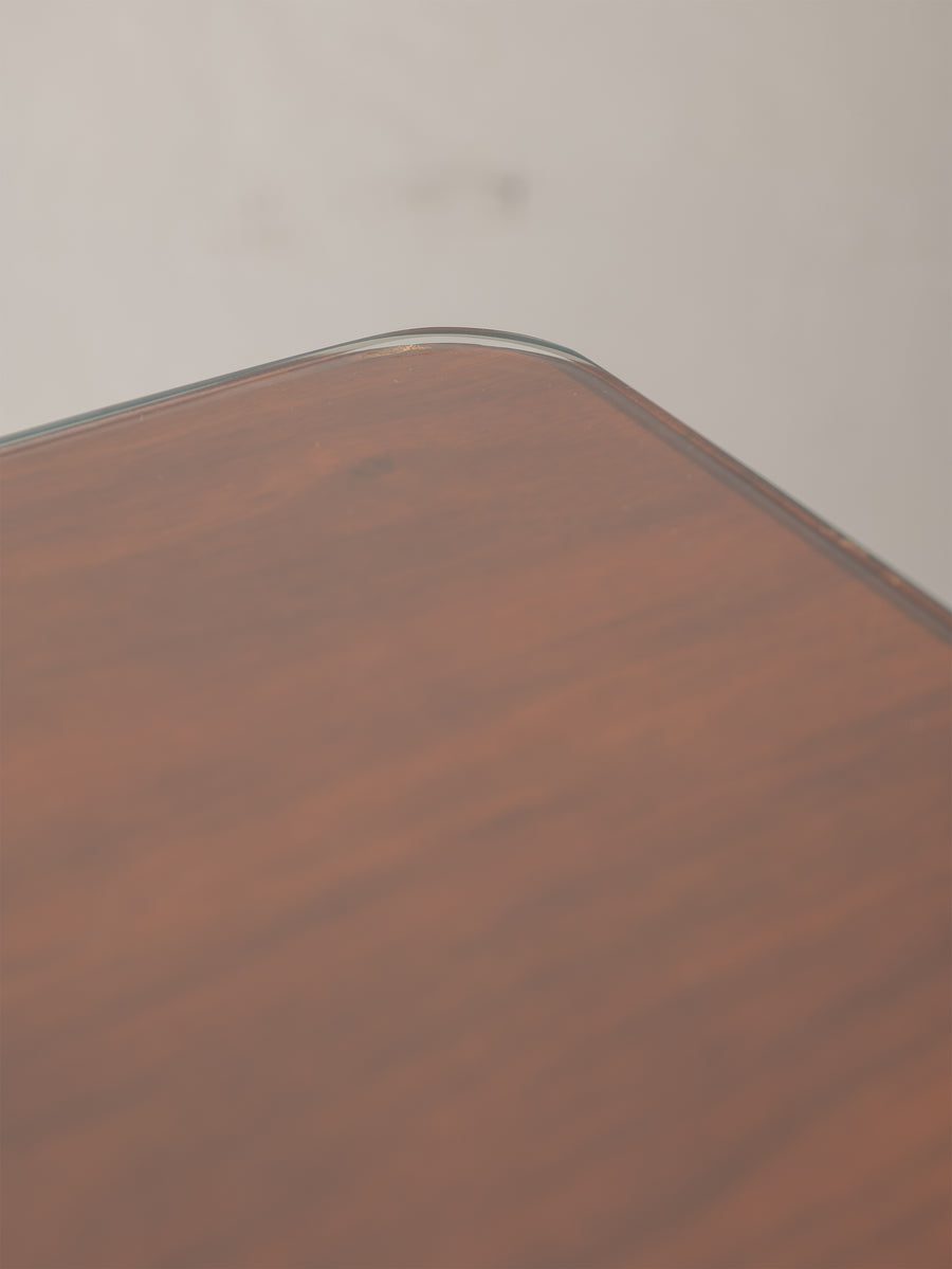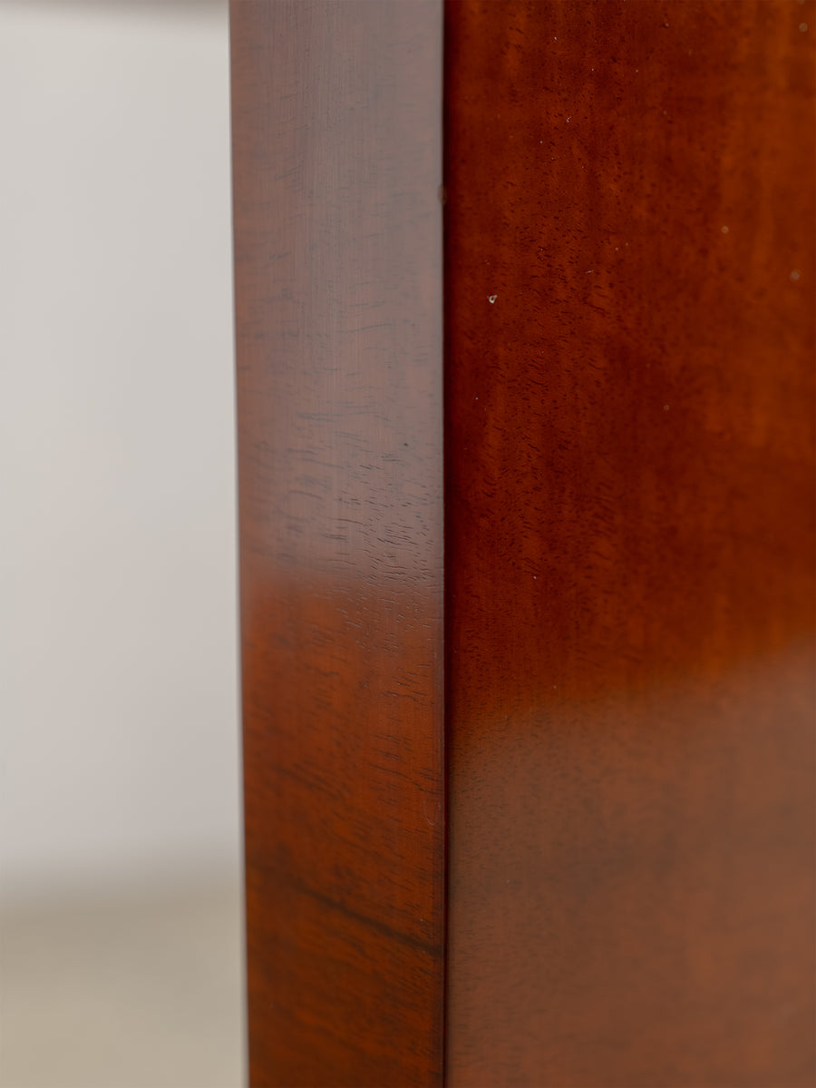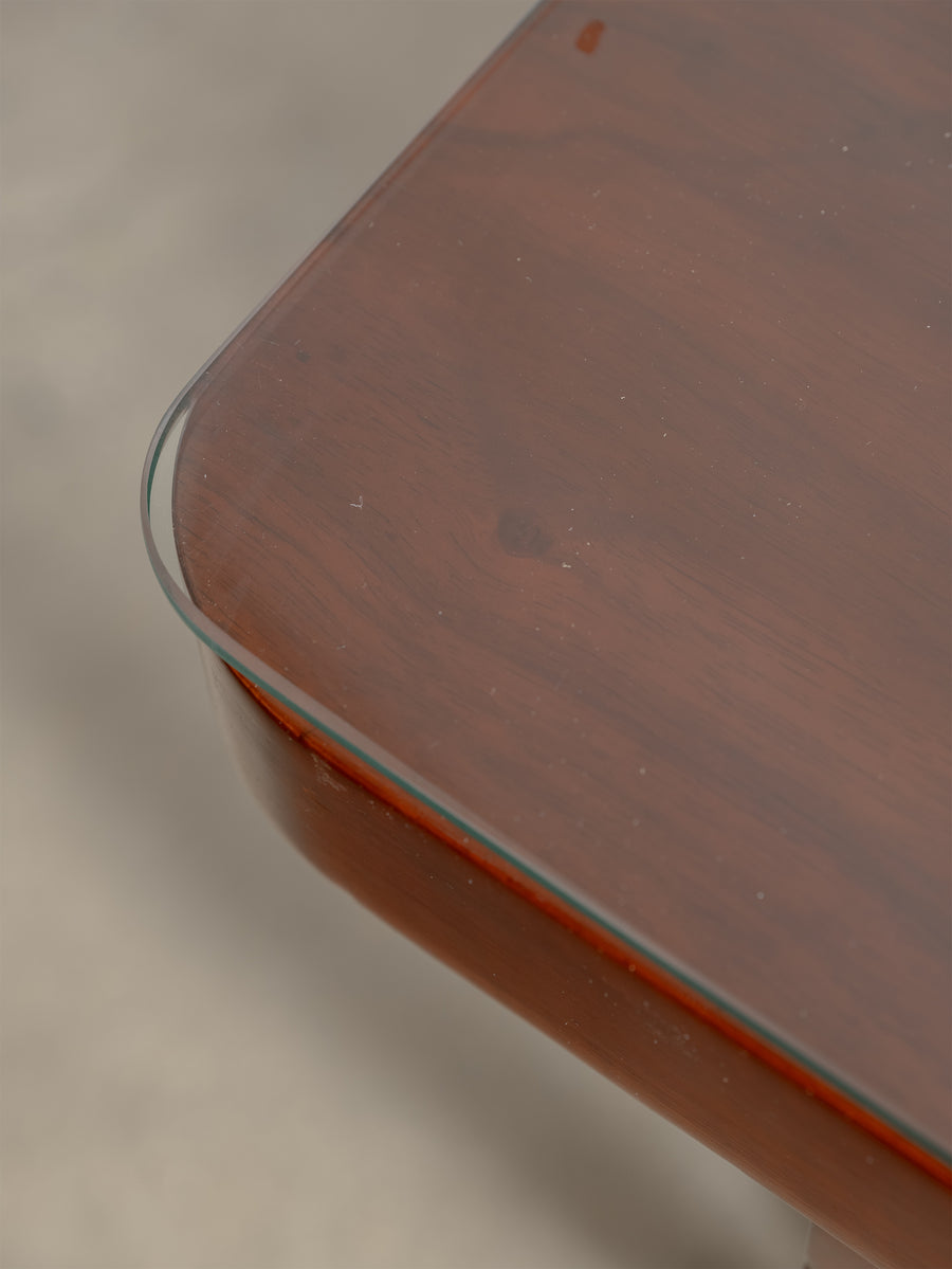 The warmth of the timber and the clean, considered lines reflect the craftsmanship of the period, with subtle detailing that adds depth without excess. Its height and scale place it comfortably as a low occasional table, versatile within both living and bedroom settings.