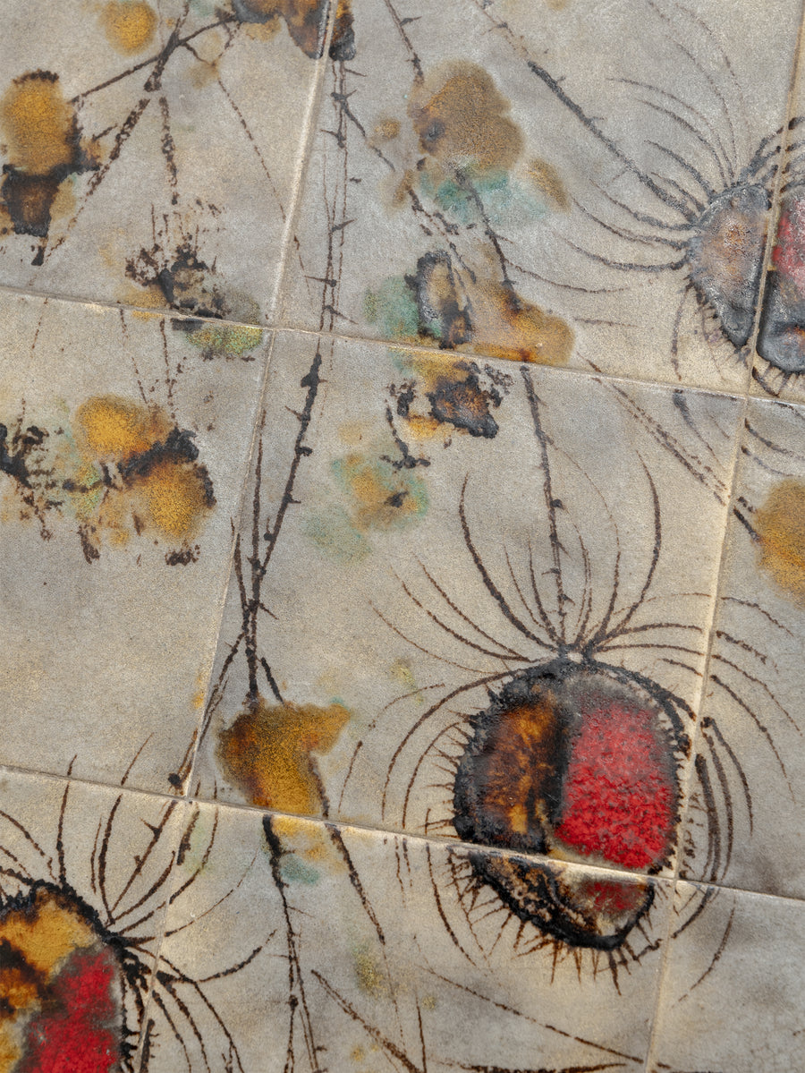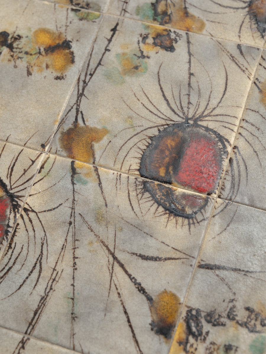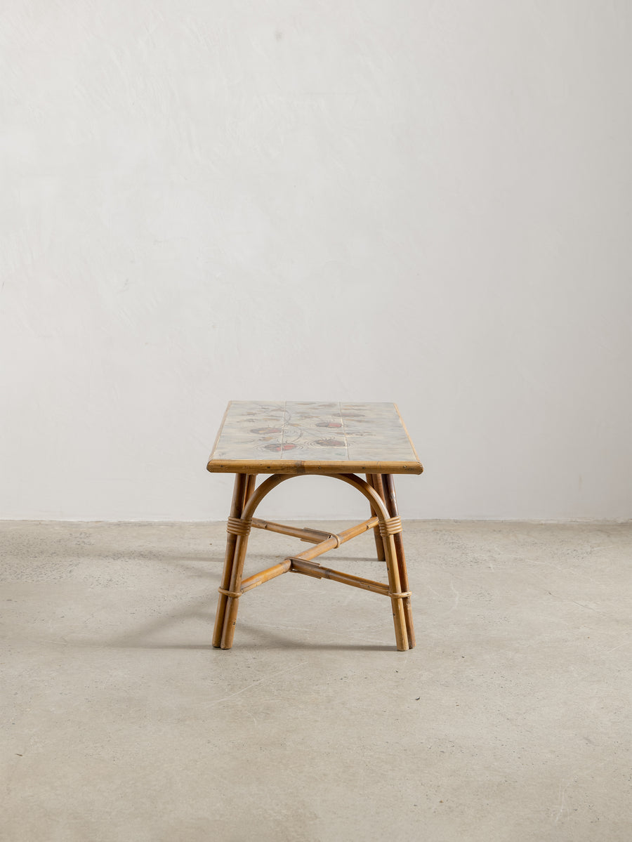 1960s Ceramic Tiled Cane Coffee Table by Audoux Minet & Chassin