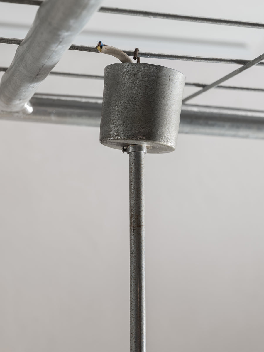 Suspended from a long metal bar, the pendant has a total drop length of 145cm, adding vertical presence and elegance to any setting.