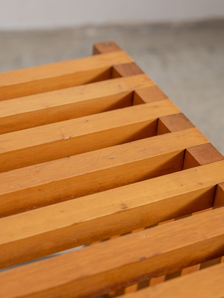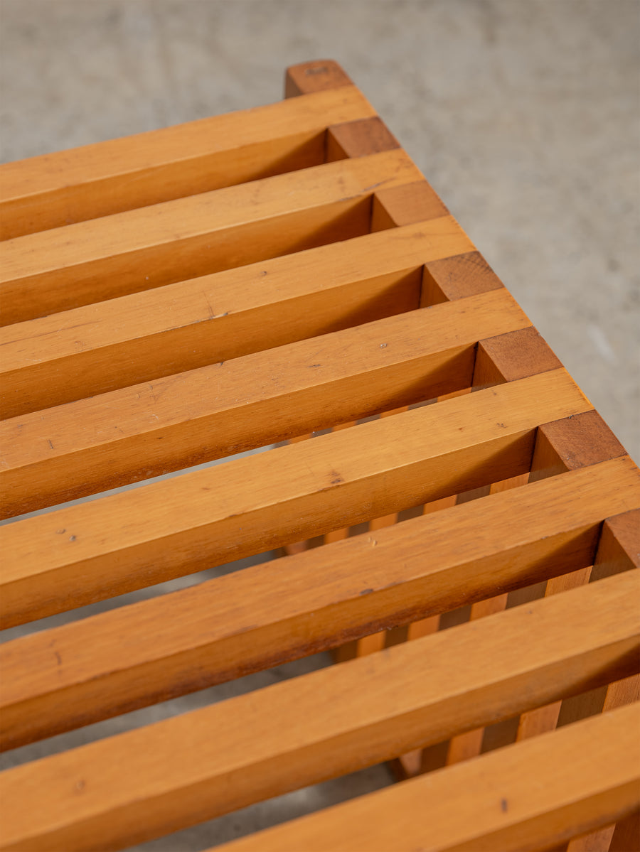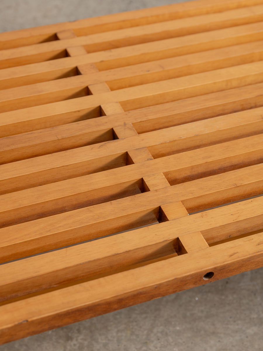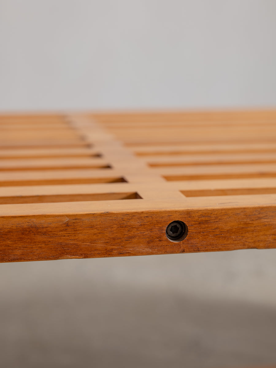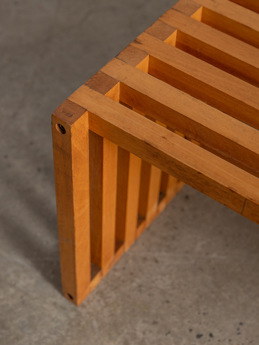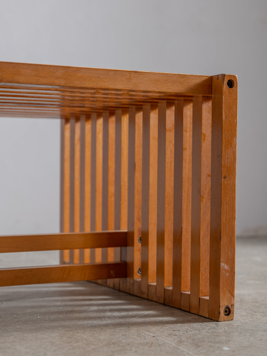 Timeless and understated, the ARA low table by Lella and Massimo Vignelli for Driade is a true celebration of minimalist Italian design. Created in 1974, its wooden slat structure is both sculptural and functional, showcasing the Vignellis' signature focus on purity of form and material integrity.