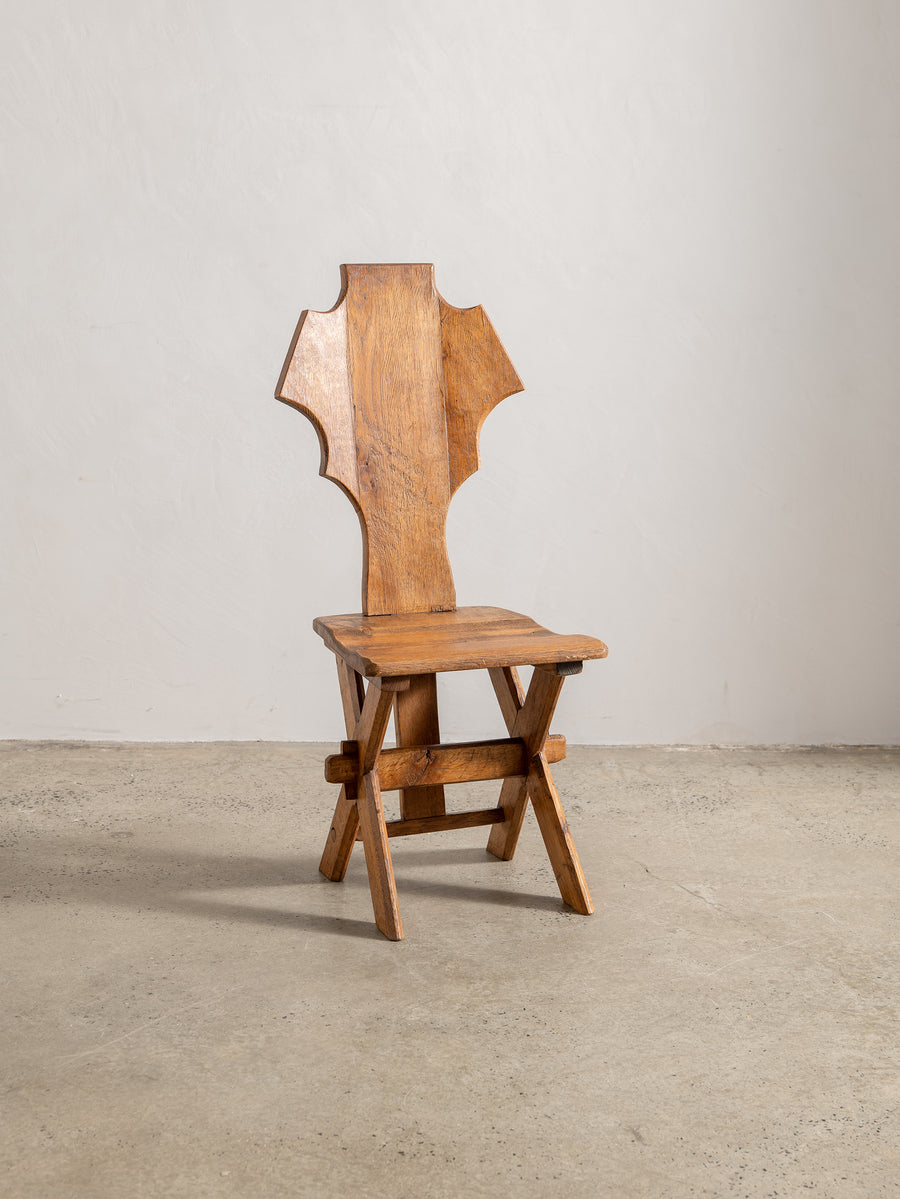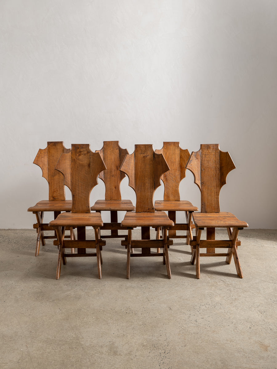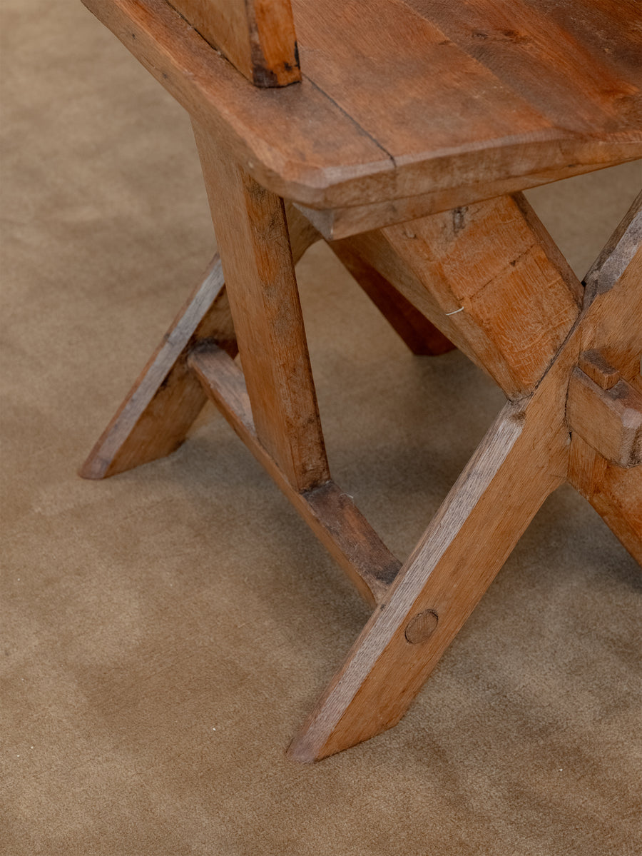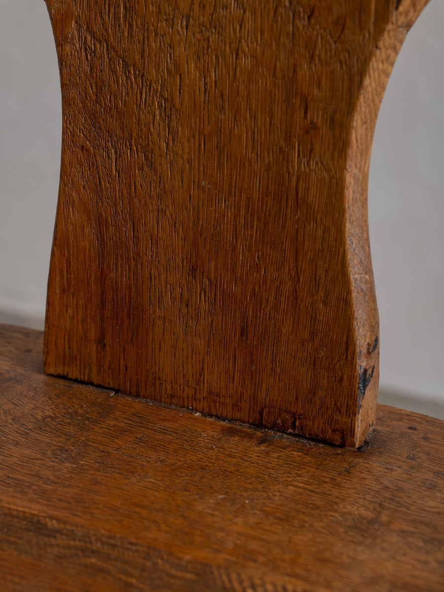 Strong, simple, and deeply functional, these Brutalist monastery chairs from Belgium embody quiet craftsmanship. Made from solid oak, their pared-back design speaks to their origins—built for purpose, with nothing unnecessary. Time has softened their edges, adding warmth to their raw, architectural form. A striking addition to any space, they bring presence without excess.
