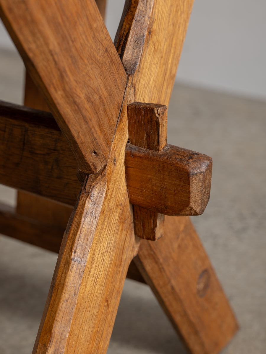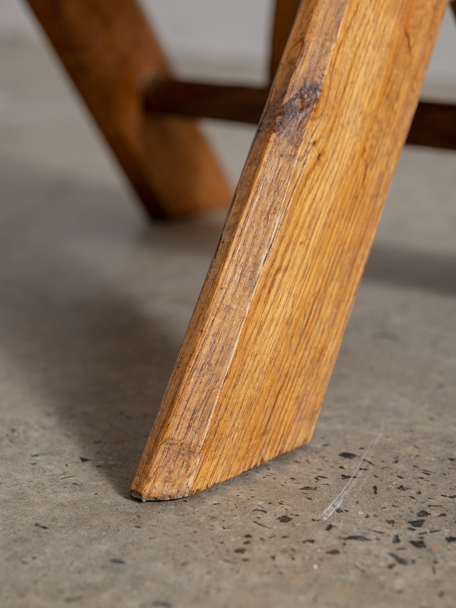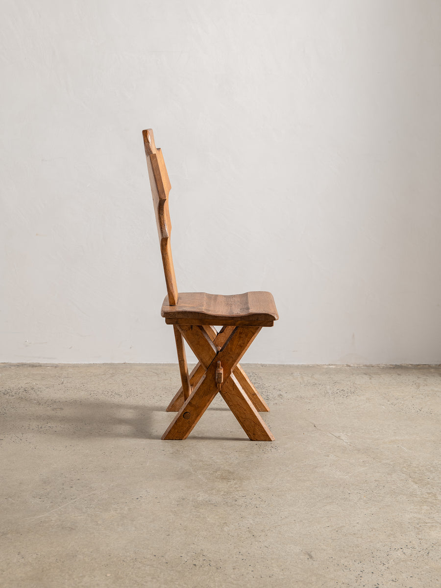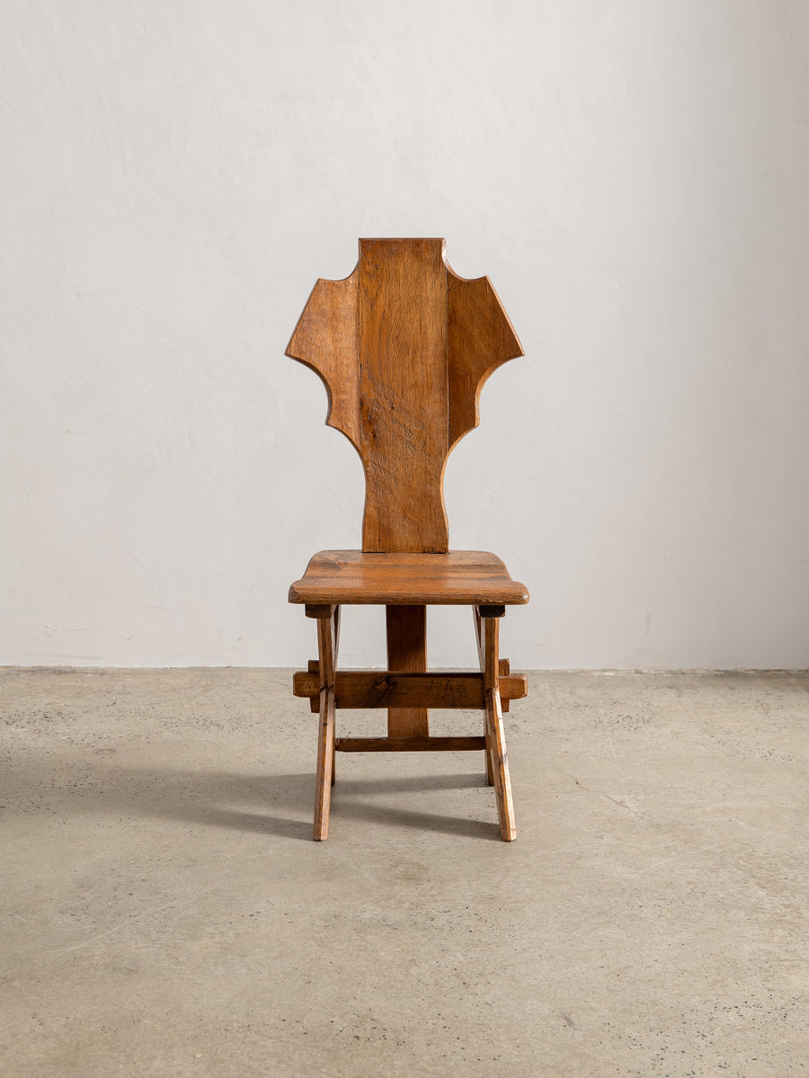 Strong, simple, and deeply functional, these Brutalist monastery chairs from Belgium embody quiet craftsmanship. Made from solid oak, their pared-back design speaks to their origins—built for purpose, with nothing unnecessary. Time has softened their edges, adding warmth to their raw, architectural form. A striking addition to any space, they bring presence without excess.