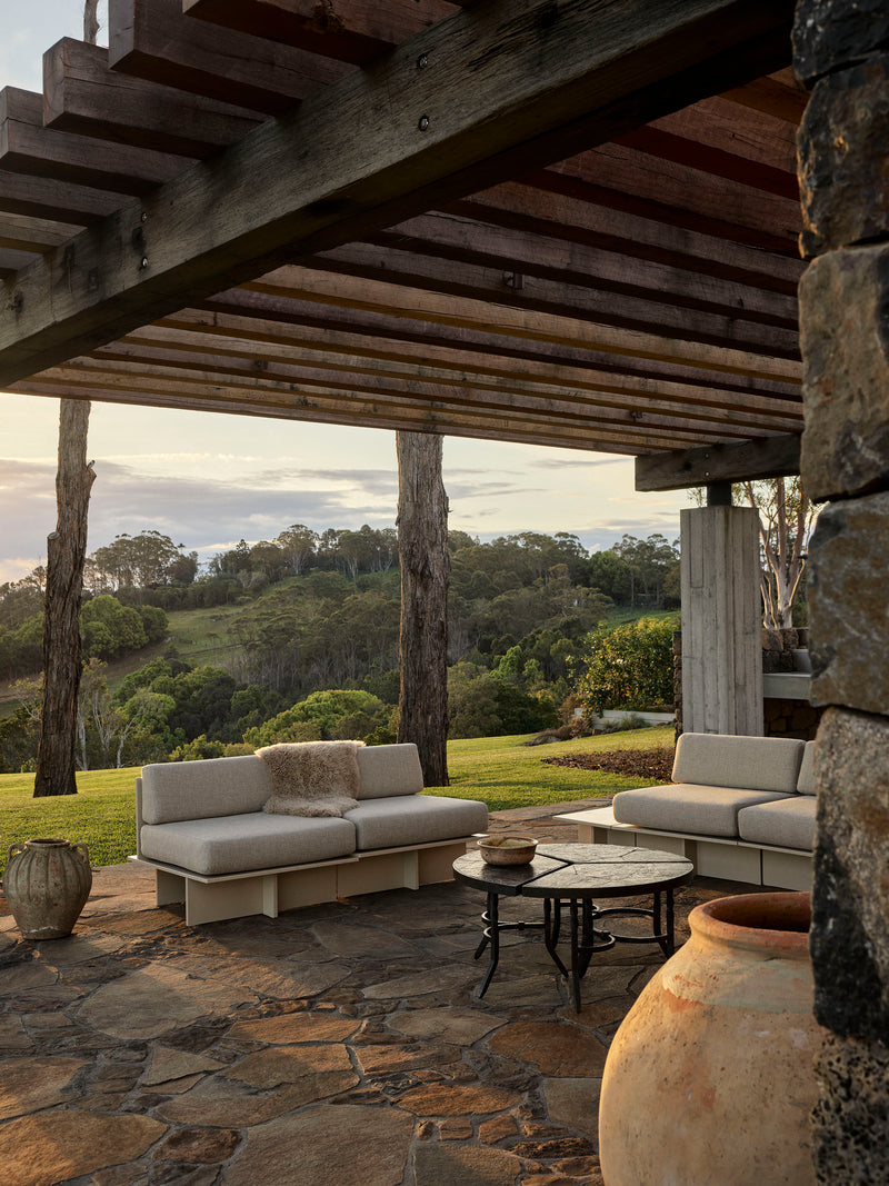 Its minimal, architectural lines are softened by the material’s natural variations, creating subtle markings that echo the look and depth of travertine. Outdoor cushions are finished in a tactile Italian fabric that feels fresh and breathable year-round. Soft yet resilient, they offer lasting comfort and include discreet straps to keep them neatly in place. A friction-fit system allows for easy, tool-free assembly, while the gently curved legs create stability across a range of outdoor surfaces.