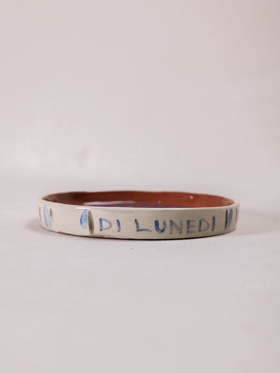 Crafted from fine terracotta, ceramics by Di Lunedi are shaped and refined over several days, giving each piece its own distinct character. The process of hand-building, paring back, and smoothing the clay creates subtle textures and natural irregularities that make every plate unique.