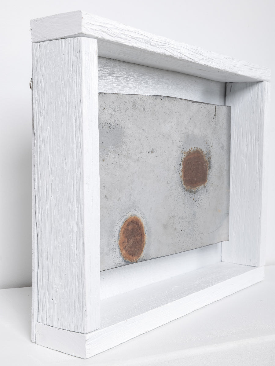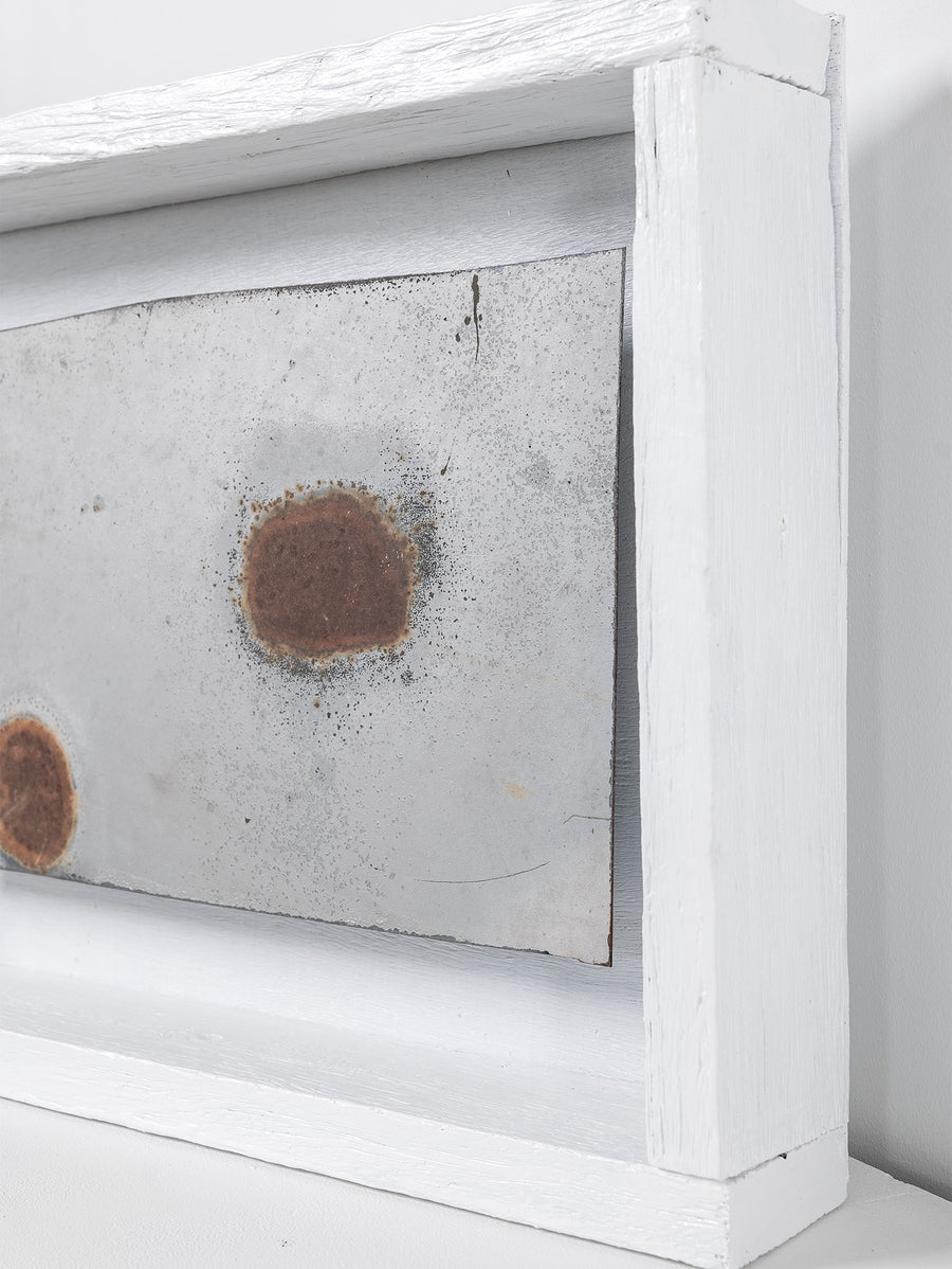 Saskia Folk's 'Panel Work' series features panels of metal sourced from abandoned steel carcasses across thousands of square kilometres of desert in Australia - from the Western Desert of Kiwirrkurra, Mt Ebenezer near Uluru, Woomera and Willington SA, and the old mining town of Broken Hill in NSW.