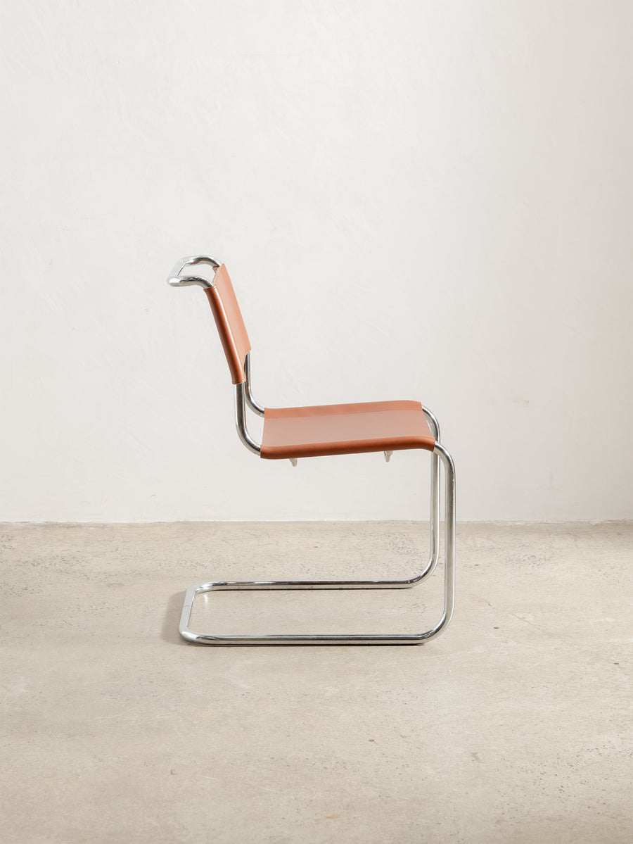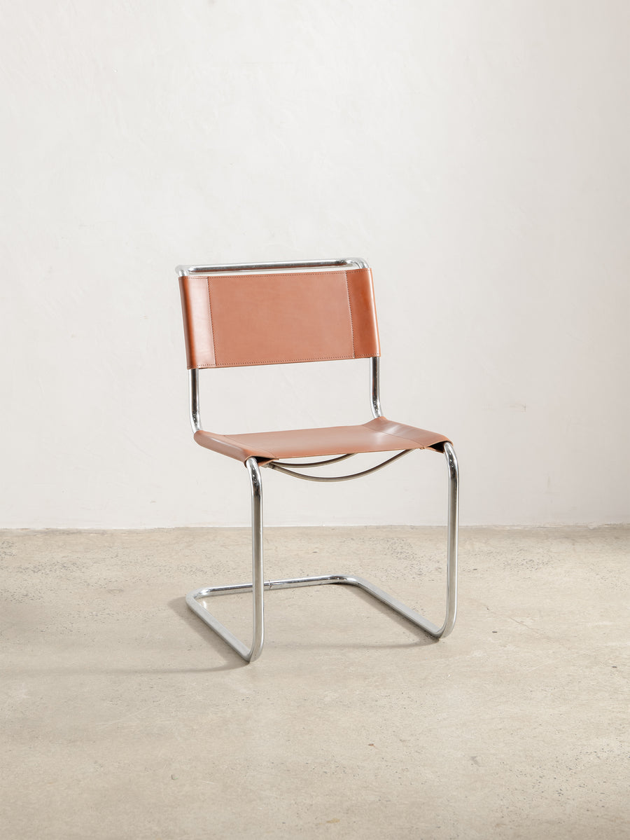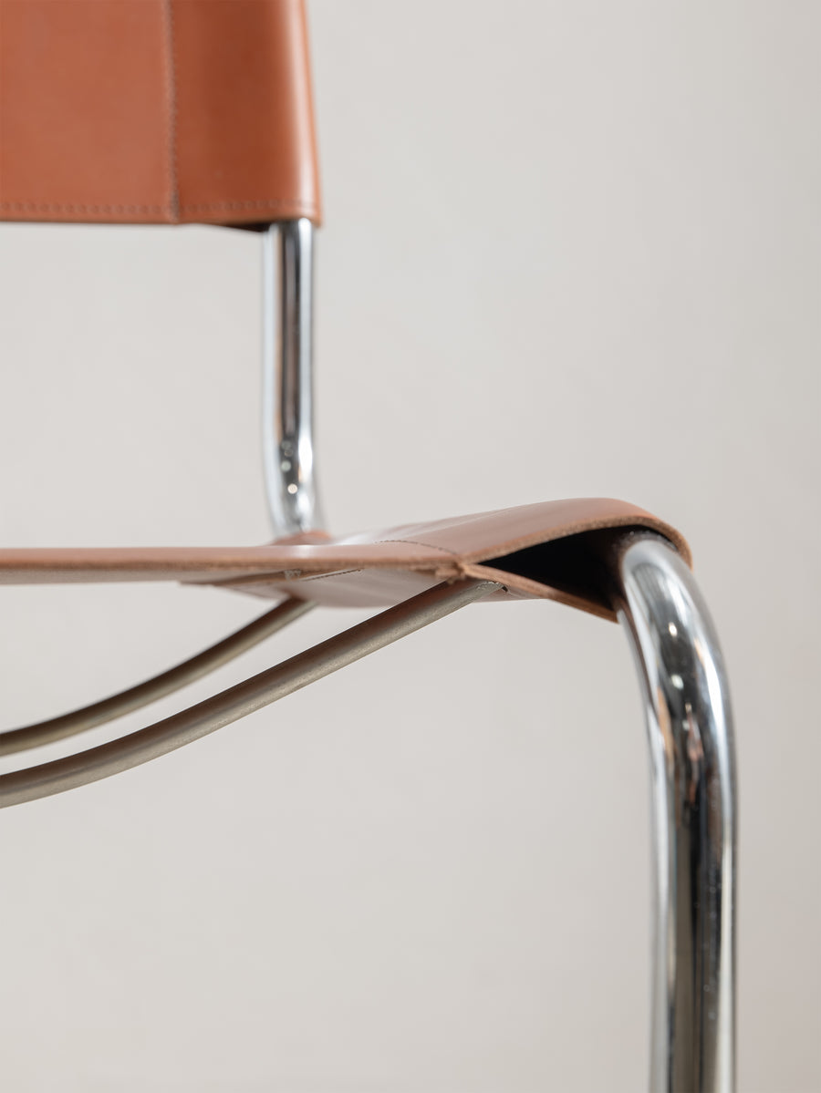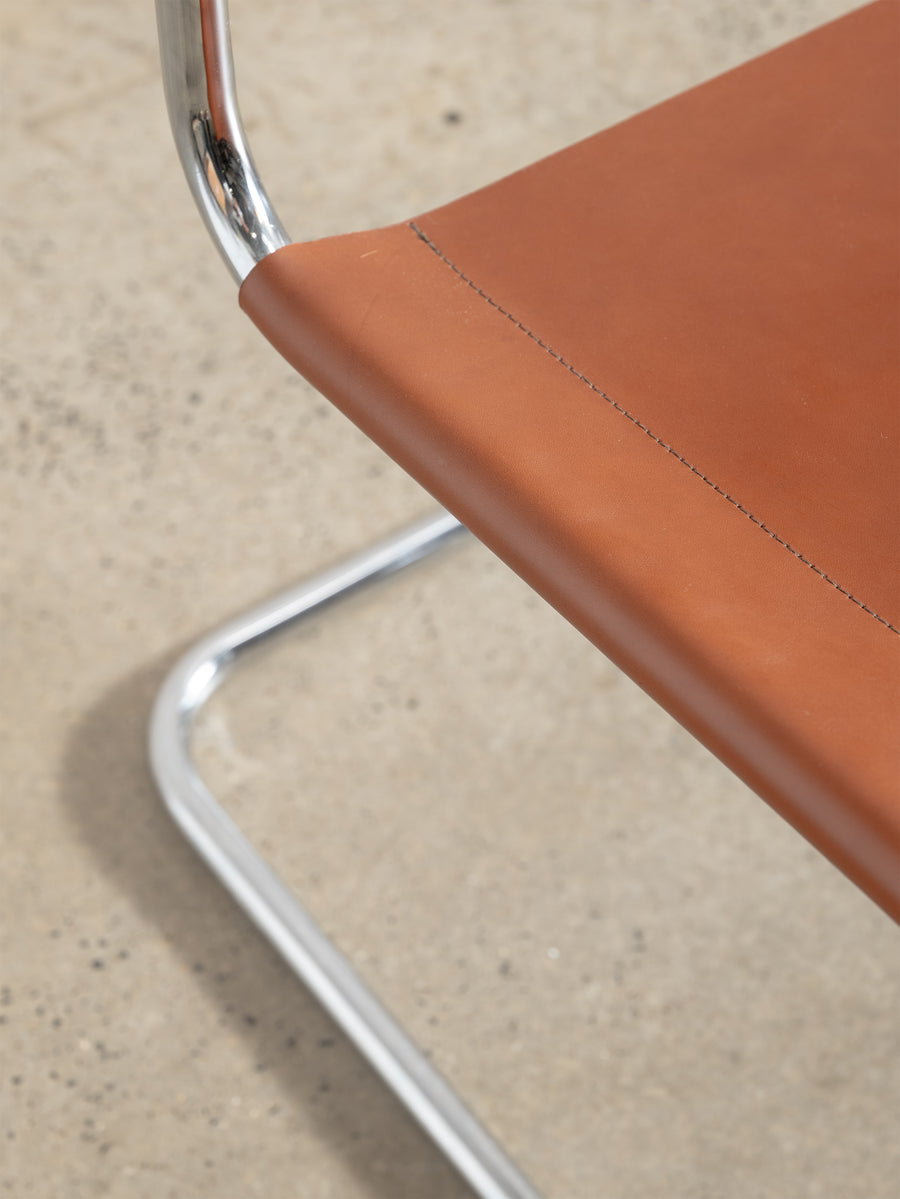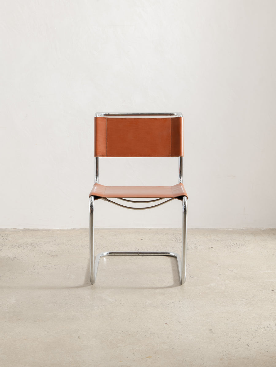 Designed by Mart Stam for Thonet, the S33 cantilever chair is one of the most iconic seating designs to emerge from the Bauhaus era. Its elegant tubular steel frame creates the signature cantilevered form, allowing the seat to gently flex and move with the body.