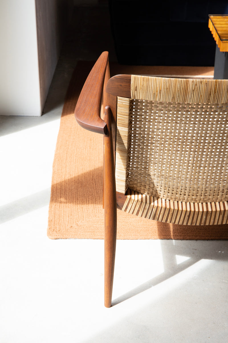The Tangali Modular Chairs are a set comprising an armless chair, chairs with one arm (left or right) and armchairs with both arms. Individual chairs can be used in different combinations based on the seating requirement in a particular space. The contours of the modular pieces are completely shaped by hand, and the cane is wrapped and woven around the wooden frames in the signature Tangali style.