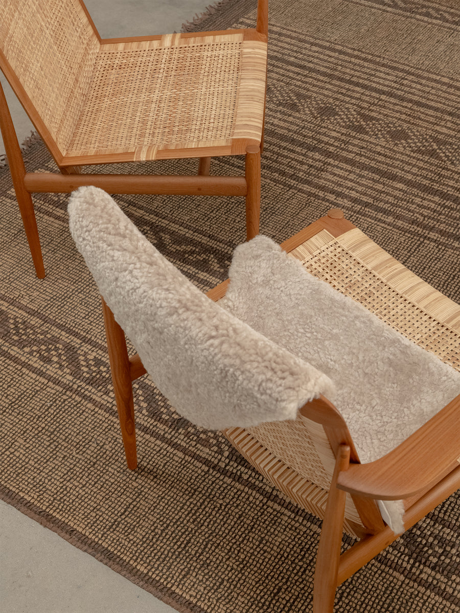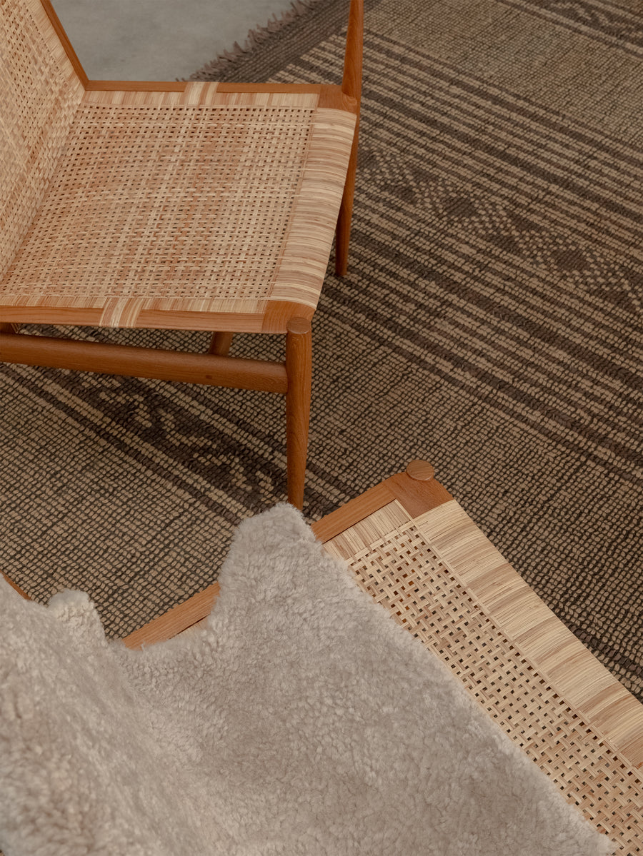 The Tangali Modular Chairs are a set comprising an armless chair, chairs with one arm (left or right) and armchairs with both arms. Individual chairs can be used in different combinations based on the seating requirement in a particular space. The contours of the modular pieces are completely shaped by hand, and the cane is wrapped and woven around the wooden frames in the signature Tangali style.