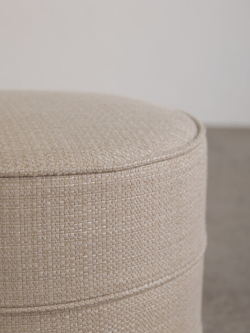 A study in refined simplicity, this Tigmi-designed ottoman is a quiet statement in both form and function. Upholstered in a richly textural Perennials fabric, its neutral tone allows the beauty of its materiality to speak for itself. Thoughtful piping detail adds a subtle definition, elevating its soft, sculptural silhouette.