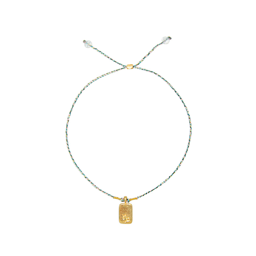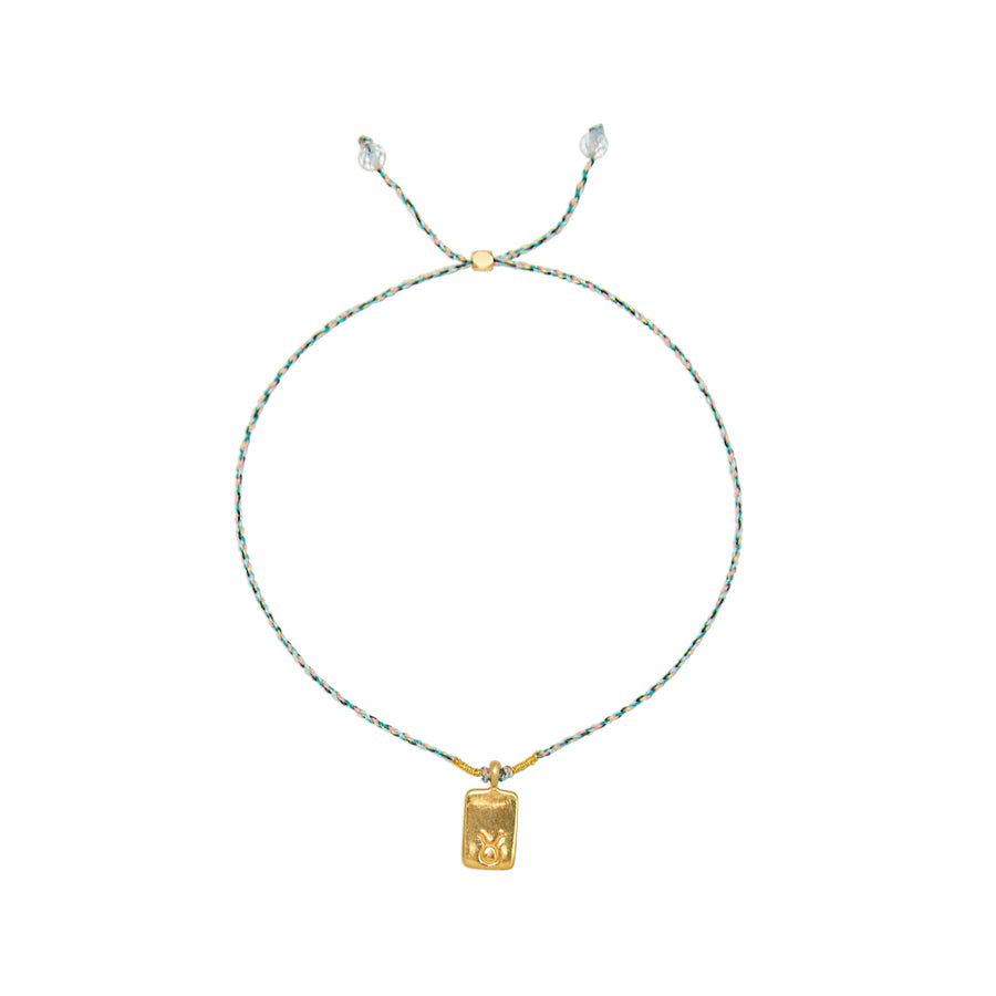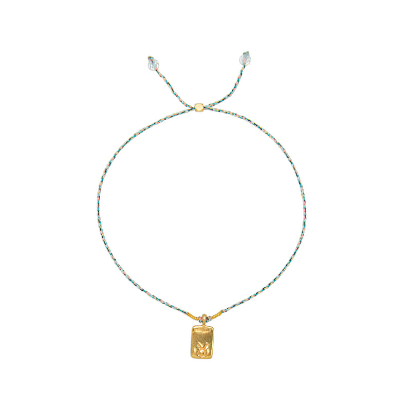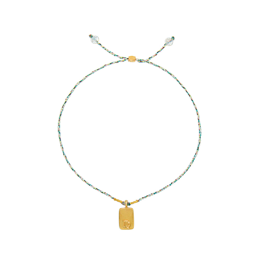 Handwoven with delicate threads and finished with a gold-plated silver charm, this bracelet celebrates each zodiac sign with quiet elegance. Its adjustable design ensures a perfect fit, making it effortless to wear alone or layered. A subtle nod to the stars — timeless, personal, and refined.