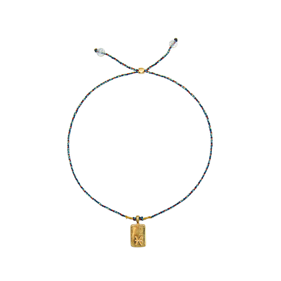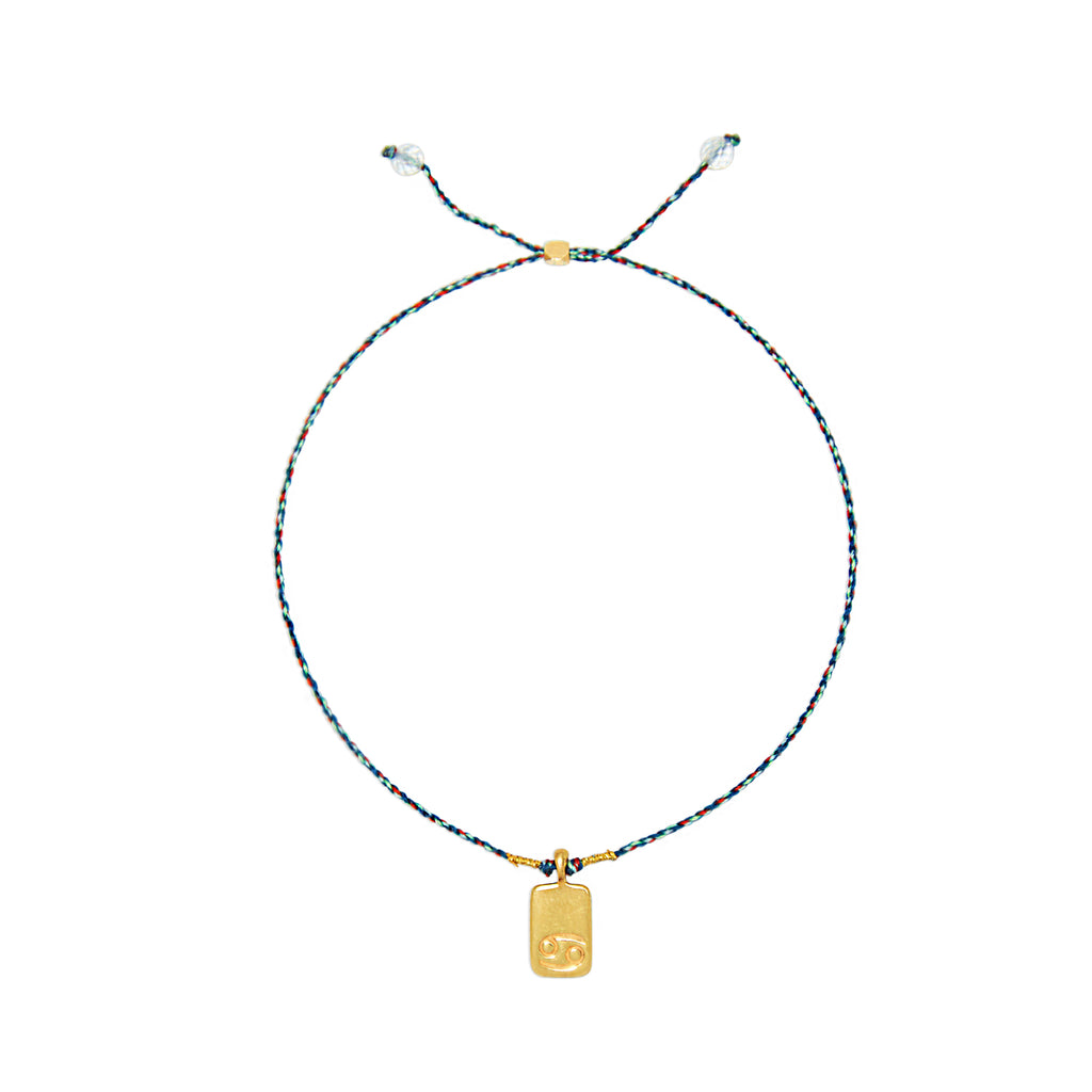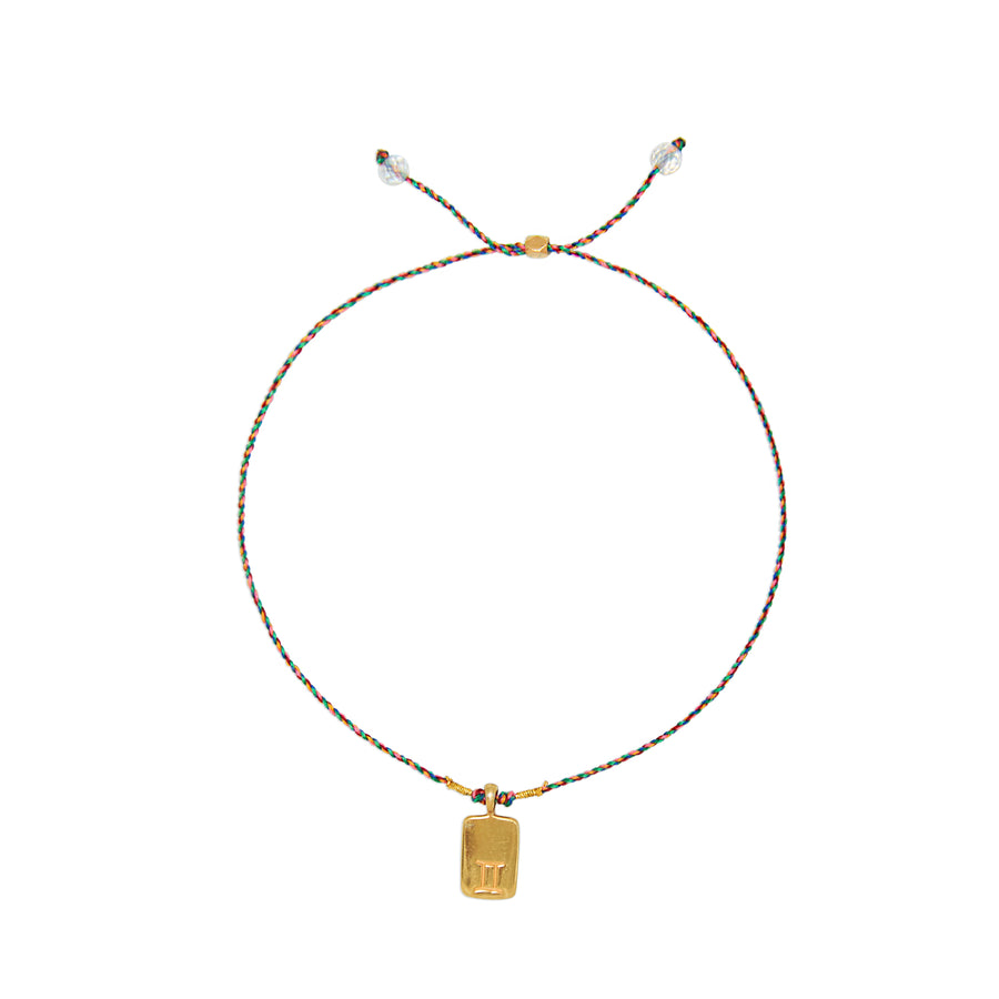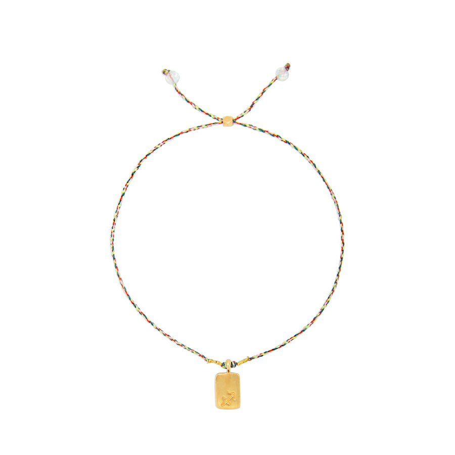 Handwoven with delicate threads and finished with a gold-plated silver charm, this bracelet celebrates each zodiac sign with quiet elegance. Its adjustable design ensures a perfect fit, making it effortless to wear alone or layered. A subtle nod to the stars — timeless, personal, and refined.